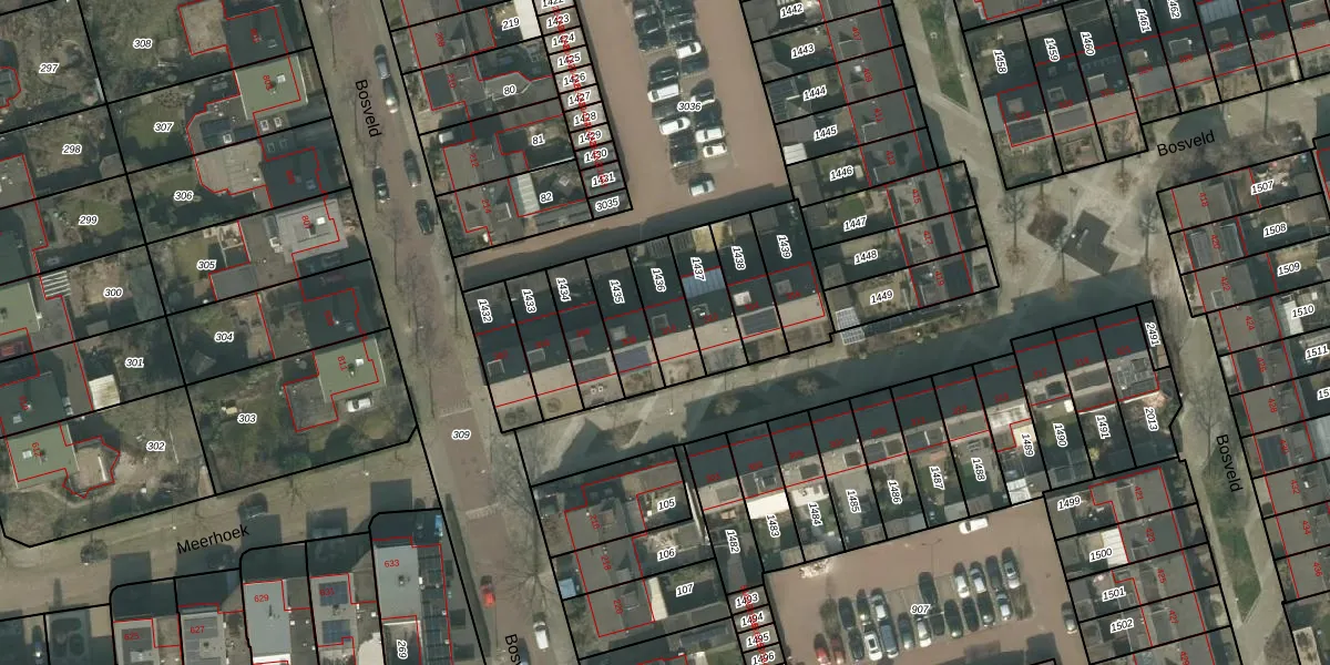 Het perceel waarop Bosveld 310 staat heeft een oppervlakte van 141 m². Dit is een middelgroot perceel. De perceeloppervlakte wordt geregistreerd door het Kadaster. Gedetailleerde informatie over de maten van dit perceel kunt u vinden in het rapport Kadastrale kaart met maatvoering van Bosveld 310.