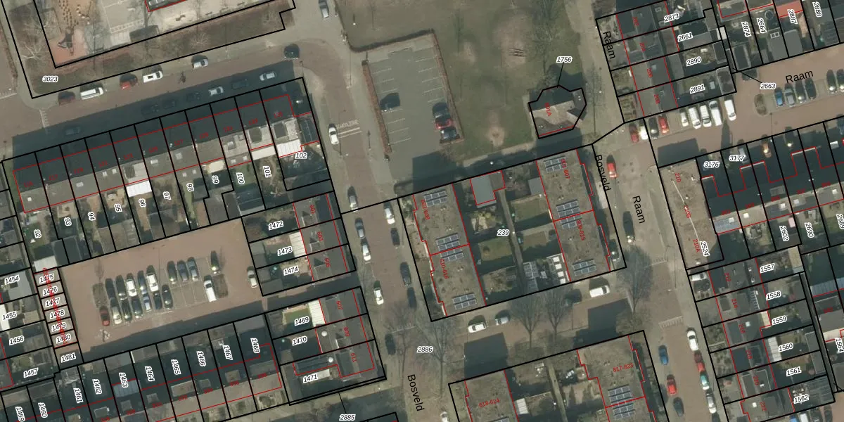 Het perceel waarop Bosveld 602 staat heeft een oppervlakte van 1457 m². Dit is een zeer groot perceel. De perceeloppervlakte wordt geregistreerd door het Kadaster. Gedetailleerde informatie over de maten van dit perceel kunt u vinden in het rapport Kadastrale kaart met maatvoering van Bosveld 602.