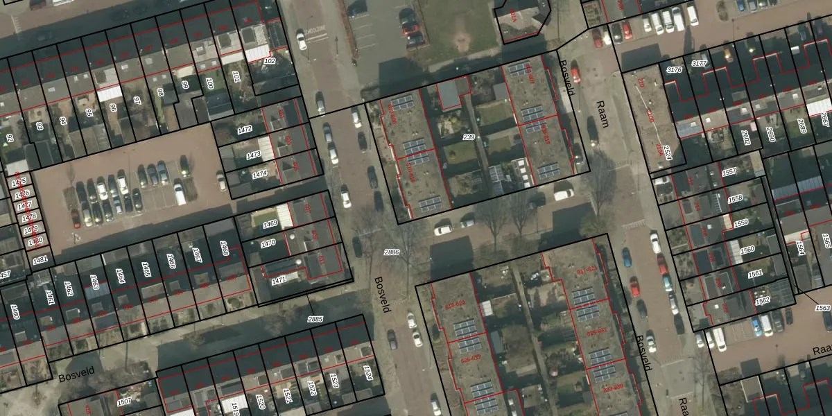 Het perceel waarop Bosveld 616 staat heeft een oppervlakte van 1457 m². Dit is een zeer groot perceel. De perceeloppervlakte wordt geregistreerd door het Kadaster. Gedetailleerde informatie over de maten van dit perceel kunt u vinden in het rapport Kadastrale kaart met maatvoering van Bosveld 616.