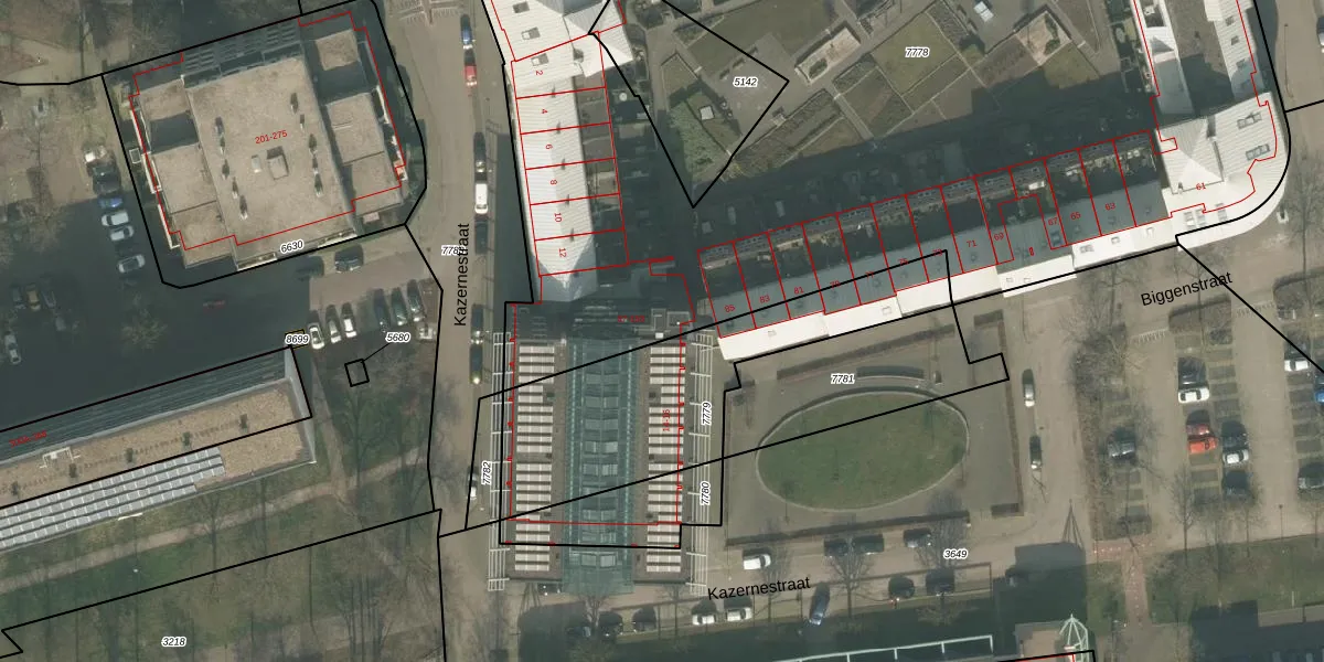 Het perceel waarop Botermarkt 103 staat heeft een oppervlakte van 8022 m². Dit is een zeer groot perceel. De perceeloppervlakte wordt geregistreerd door het Kadaster. Gedetailleerde informatie over de maten van dit perceel kunt u vinden in het rapport Kadastrale kaart met maatvoering van Botermarkt 103.
