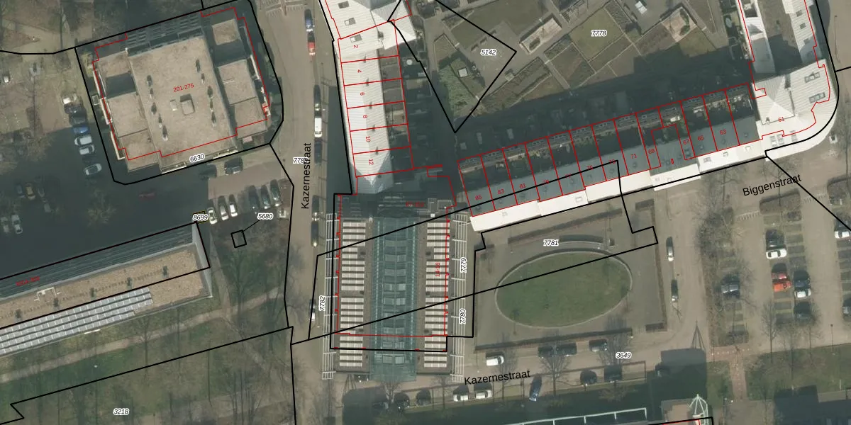 Het perceel waarop Botermarkt 87 staat heeft een oppervlakte van 8022 m². Dit is een zeer groot perceel. De perceeloppervlakte wordt geregistreerd door het Kadaster. Gedetailleerde informatie over de maten van dit perceel kunt u vinden in het rapport Kadastrale kaart met maatvoering van Botermarkt 87.