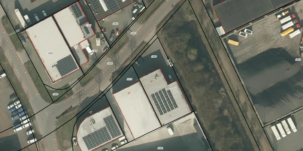 Bovenstraat 1-H is gelegen op kadastraal perceel UDN00T1880. Deze kadastrale aanduiding is uniek en wordt gebruikt door het Kadaster om eigendomsrechten en andere zakelijke rechten vast te leggen. Het perceel maakt onderdeel uit van de kadastrale gemeente Uden.