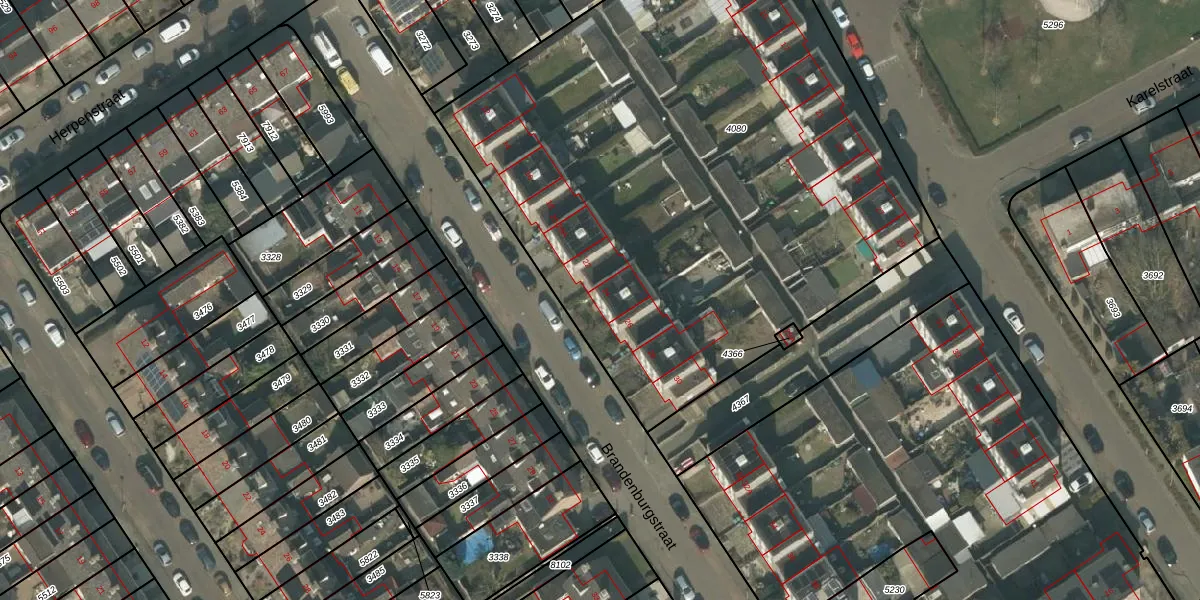 Het perceel waarop Brandenburgstraat 24 staat heeft een oppervlakte van 3916 m². Dit is een zeer groot perceel. De perceeloppervlakte wordt geregistreerd door het Kadaster. Gedetailleerde informatie over de maten van dit perceel kunt u vinden in het rapport Kadastrale kaart met maatvoering van Brandenburgstraat 24.
