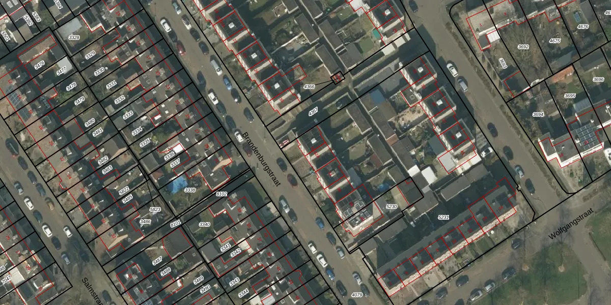 Het perceel waarop Brandenburgstraat 32 staat heeft een oppervlakte van 3413 m². Dit is een zeer groot perceel. De perceeloppervlakte wordt geregistreerd door het Kadaster. Gedetailleerde informatie over de maten van dit perceel kunt u vinden in het rapport Kadastrale kaart met maatvoering van Brandenburgstraat 32.