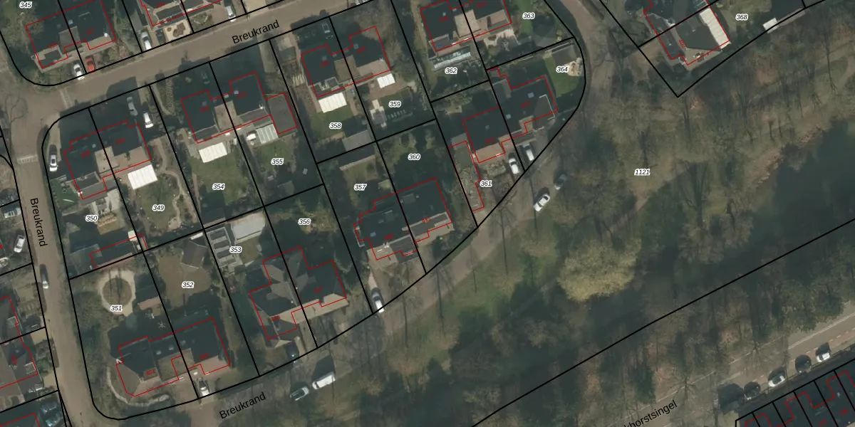 Het perceel waarop Breukrand 411 staat heeft een oppervlakte van 455 m². Dit is een groot perceel. De perceeloppervlakte wordt geregistreerd door het Kadaster. Gedetailleerde informatie over de maten van dit perceel kunt u vinden in het rapport Kadastrale kaart met maatvoering van Breukrand 411.