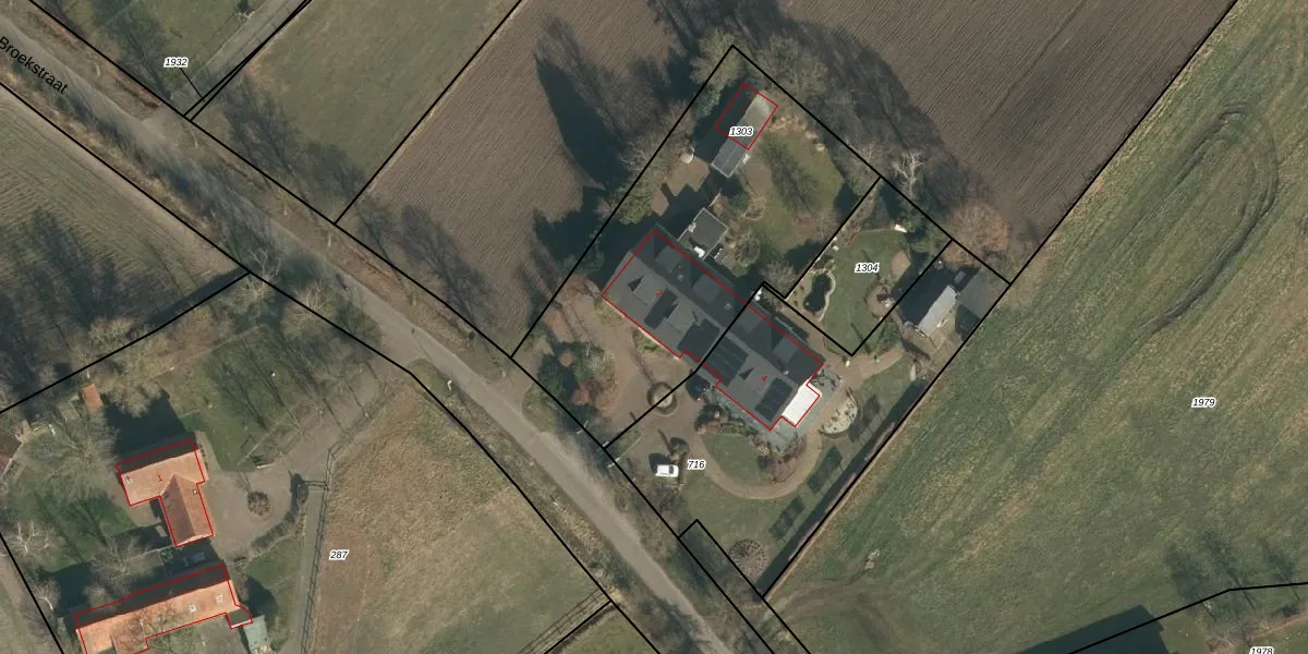 Het perceel waarop Broekstraat 2 staat heeft een oppervlakte van 1555 m². Dit is een zeer groot perceel. De perceeloppervlakte wordt geregistreerd door het Kadaster. Gedetailleerde informatie over de maten van dit perceel kunt u vinden in het rapport Kadastrale kaart met maatvoering van Broekstraat 2.