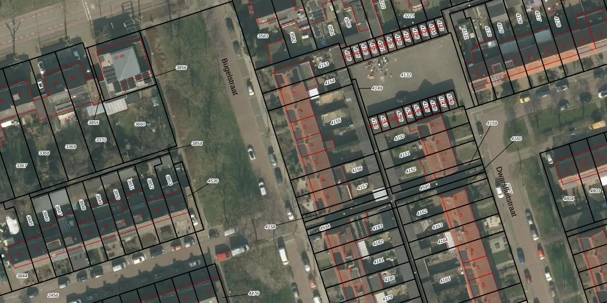 Het perceel waarop Bugelstraat 12 staat heeft een oppervlakte van 704 m². Dit is een groot perceel. De perceeloppervlakte wordt geregistreerd door het Kadaster. Gedetailleerde informatie over de maten van dit perceel kunt u vinden in het rapport Kadastrale kaart met maatvoering van Bugelstraat 12.
