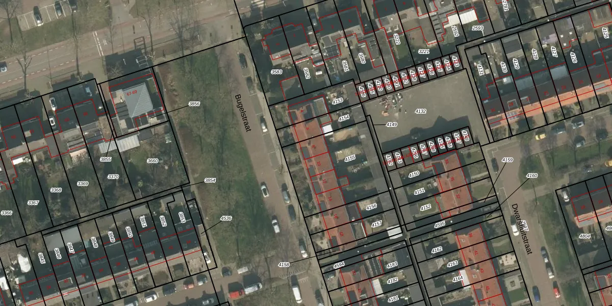 Bugelstraat 8 is gelegen op kadastraal perceel UDN00B4155. Deze kadastrale aanduiding is uniek en wordt gebruikt door het Kadaster om eigendomsrechten en andere zakelijke rechten vast te leggen. Het perceel maakt onderdeel uit van de kadastrale gemeente Uden.