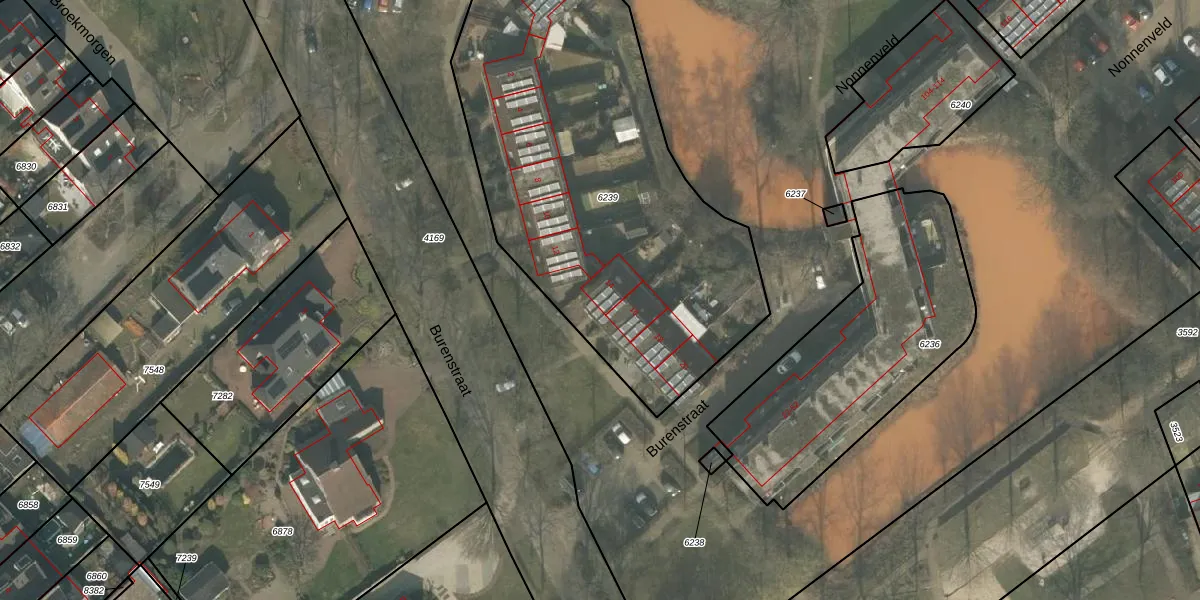 Het perceel waarop Burenstraat 14 staat heeft een oppervlakte van 2278 m². Dit is een zeer groot perceel. De perceeloppervlakte wordt geregistreerd door het Kadaster. Gedetailleerde informatie over de maten van dit perceel kunt u vinden in het rapport Kadastrale kaart met maatvoering van Burenstraat 14.