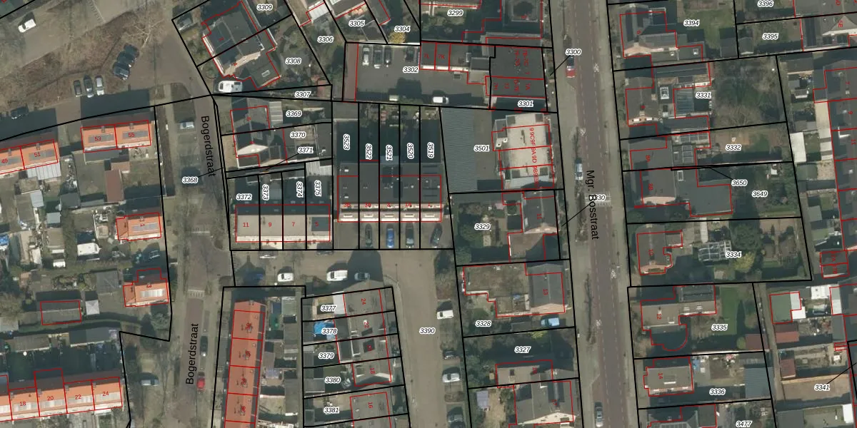 Gebruik de zoekbalk of klik op een perceel voor informatie over de adressen binnen dit perceel.
