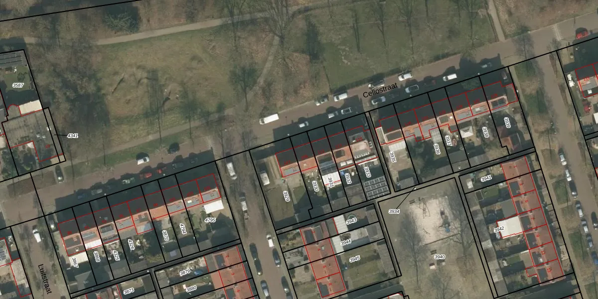 Het perceel waarop Cellostraat 109 staat heeft een oppervlakte van 175 m². Dit is een middelgroot perceel. De perceeloppervlakte wordt geregistreerd door het Kadaster. Gedetailleerde informatie over de maten van dit perceel kunt u vinden in het rapport Kadastrale kaart met maatvoering van Cellostraat 109.