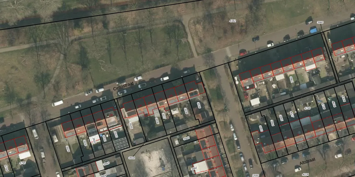 Het perceel waarop Cellostraat 127 staat heeft een oppervlakte van 348 m². Dit is een groot perceel. De perceeloppervlakte wordt geregistreerd door het Kadaster. Gedetailleerde informatie over de maten van dit perceel kunt u vinden in het rapport Kadastrale kaart met maatvoering van Cellostraat 127.