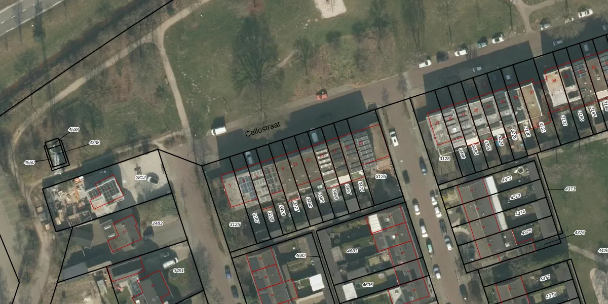 Cellostraat 13 is gelegen op kadastraal perceel UDN00B3489. Deze kadastrale aanduiding is uniek en wordt gebruikt door het Kadaster om eigendomsrechten en andere zakelijke rechten vast te leggen. Het perceel maakt onderdeel uit van de kadastrale gemeente Uden.