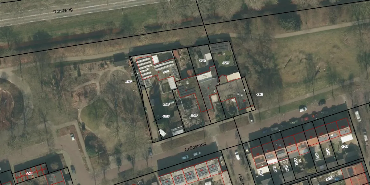 Cellostraat 6 is gelegen op kadastraal perceel UDN00B3589. Deze kadastrale aanduiding is uniek en wordt gebruikt door het Kadaster om eigendomsrechten en andere zakelijke rechten vast te leggen. Het perceel maakt onderdeel uit van de kadastrale gemeente Uden.
