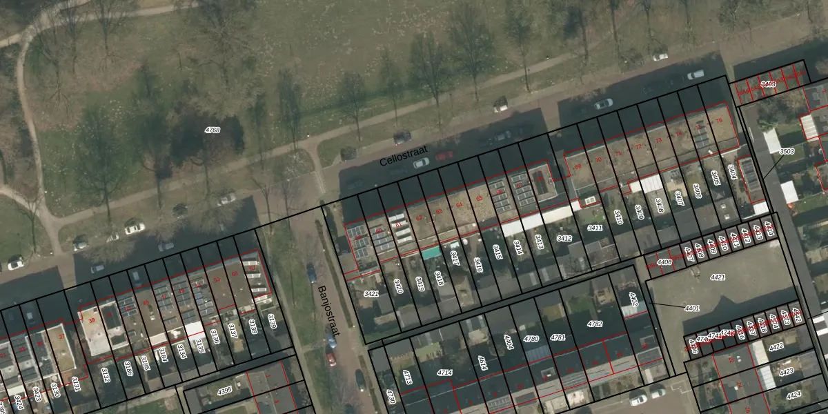 Cellostraat 62 is gelegen op kadastraal perceel UDN00B3418. Deze kadastrale aanduiding is uniek en wordt gebruikt door het Kadaster om eigendomsrechten en andere zakelijke rechten vast te leggen. Het perceel maakt onderdeel uit van de kadastrale gemeente Uden.