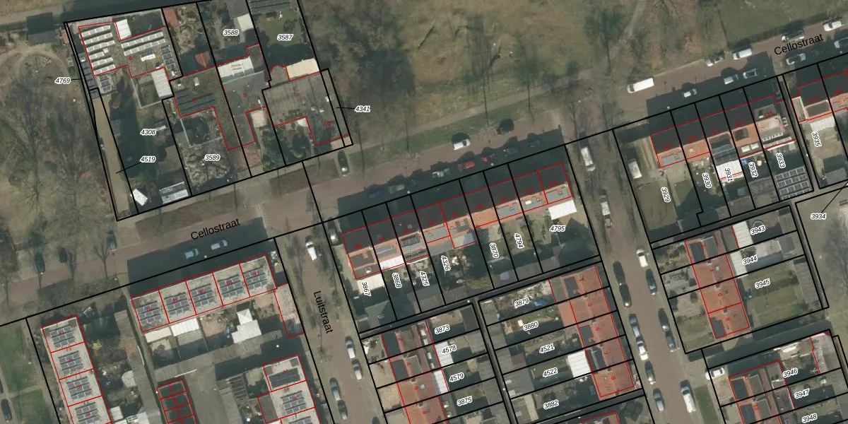 Cellostraat 95 is gelegen op kadastraal perceel UDN00B4326. Deze kadastrale aanduiding is uniek en wordt gebruikt door het Kadaster om eigendomsrechten en andere zakelijke rechten vast te leggen. Het perceel maakt onderdeel uit van de kadastrale gemeente Uden.