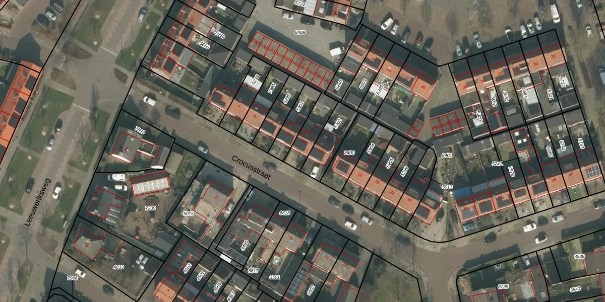 Het perceel waarop Crocusstraat 12 staat heeft een oppervlakte van 2494 m². Dit is een zeer groot perceel. De perceeloppervlakte wordt geregistreerd door het Kadaster. Gedetailleerde informatie over de maten van dit perceel kunt u vinden in het rapport Kadastrale kaart met maatvoering van Crocusstraat 12.