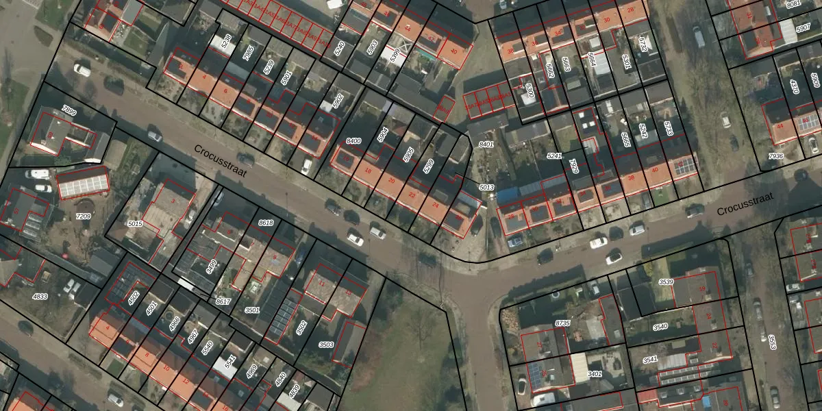 Het perceel waarop Crocusstraat 22 staat heeft een oppervlakte van 161 m². Dit is een middelgroot perceel. De perceeloppervlakte wordt geregistreerd door het Kadaster. Gedetailleerde informatie over de maten van dit perceel kunt u vinden in het rapport Kadastrale kaart met maatvoering van Crocusstraat 22.