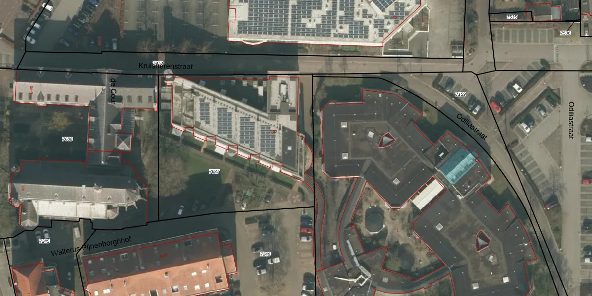 Het perceel waarop de Cour 15 staat heeft een oppervlakte van 2429 m². Dit is een zeer groot perceel. De perceeloppervlakte wordt geregistreerd door het Kadaster. Gedetailleerde informatie over de maten van dit perceel kunt u vinden in het rapport Kadastrale kaart met maatvoering van de Cour 15.