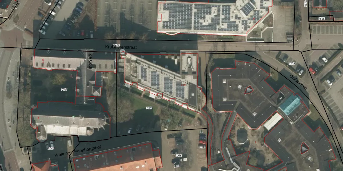 Het perceel waarop de Cour 17 staat heeft een oppervlakte van 2429 m². Dit is een zeer groot perceel. De perceeloppervlakte wordt geregistreerd door het Kadaster. Gedetailleerde informatie over de maten van dit perceel kunt u vinden in het rapport Kadastrale kaart met maatvoering van de Cour 17.