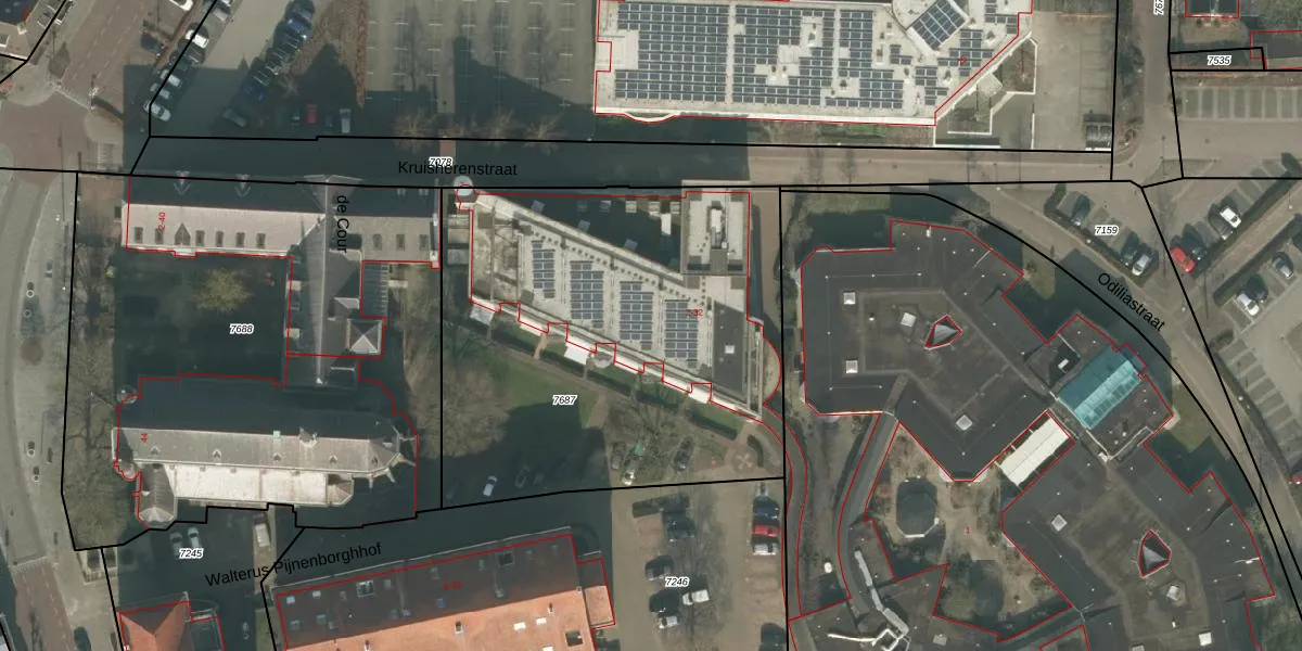 Het perceel waarop de Cour 24 staat heeft een oppervlakte van 2429 m². Dit is een zeer groot perceel. De perceeloppervlakte wordt geregistreerd door het Kadaster. Gedetailleerde informatie over de maten van dit perceel kunt u vinden in het rapport Kadastrale kaart met maatvoering van de Cour 24.