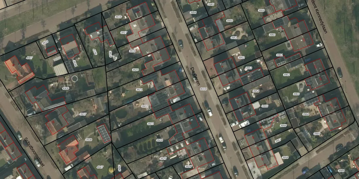 Het perceel waarop De Geren 9 staat heeft een oppervlakte van 505 m². Dit is een groot perceel. De perceeloppervlakte wordt geregistreerd door het Kadaster. Gedetailleerde informatie over de maten van dit perceel kunt u vinden in het rapport Kadastrale kaart met maatvoering van De Geren 9.