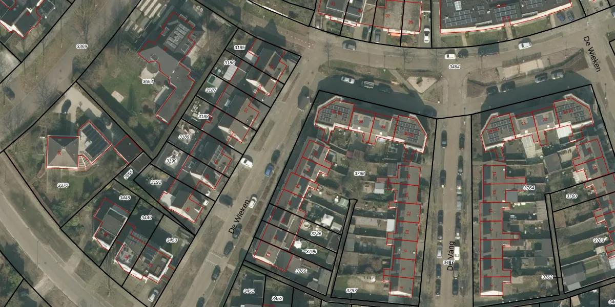 Het perceel waarop De Wieken 42 staat heeft een oppervlakte van 2479 m². Dit is een zeer groot perceel. De perceeloppervlakte wordt geregistreerd door het Kadaster. Gedetailleerde informatie over de maten van dit perceel kunt u vinden in het rapport Kadastrale kaart met maatvoering van De Wieken 42.