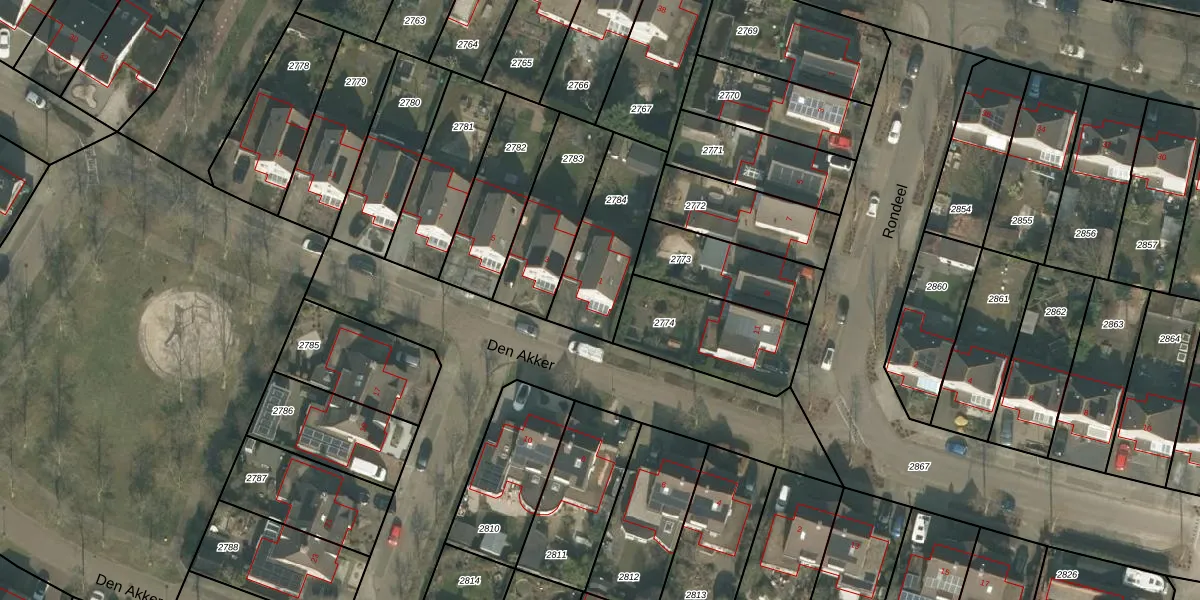 Het perceel waarop Den Akker 1 staat heeft een oppervlakte van 355 m². Dit is een groot perceel. De perceeloppervlakte wordt geregistreerd door het Kadaster. Gedetailleerde informatie over de maten van dit perceel kunt u vinden in het rapport Kadastrale kaart met maatvoering van Den Akker 1.
