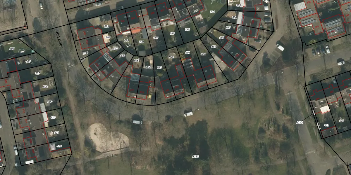 den Brier 223 is gelegen op kadastraal perceel UDN00S892. Deze kadastrale aanduiding is uniek en wordt gebruikt door het Kadaster om eigendomsrechten en andere zakelijke rechten vast te leggen. Het perceel maakt onderdeel uit van de kadastrale gemeente Uden.