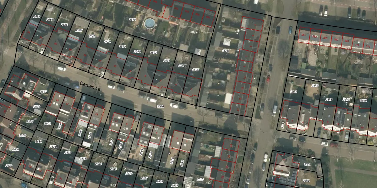 Het perceel waarop Dertienvat 2 staat heeft een oppervlakte van 211 m². Dit is een middelgroot perceel. De perceeloppervlakte wordt geregistreerd door het Kadaster. Gedetailleerde informatie over de maten van dit perceel kunt u vinden in het rapport Kadastrale kaart met maatvoering van Dertienvat 2.