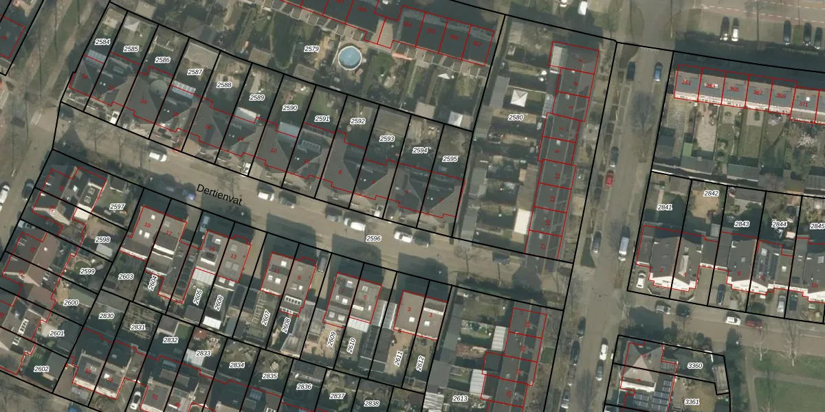 Het perceel waarop Dertienvat 4 staat heeft een oppervlakte van 221 m². Dit is een middelgroot perceel. De perceeloppervlakte wordt geregistreerd door het Kadaster. Gedetailleerde informatie over de maten van dit perceel kunt u vinden in het rapport Kadastrale kaart met maatvoering van Dertienvat 4.