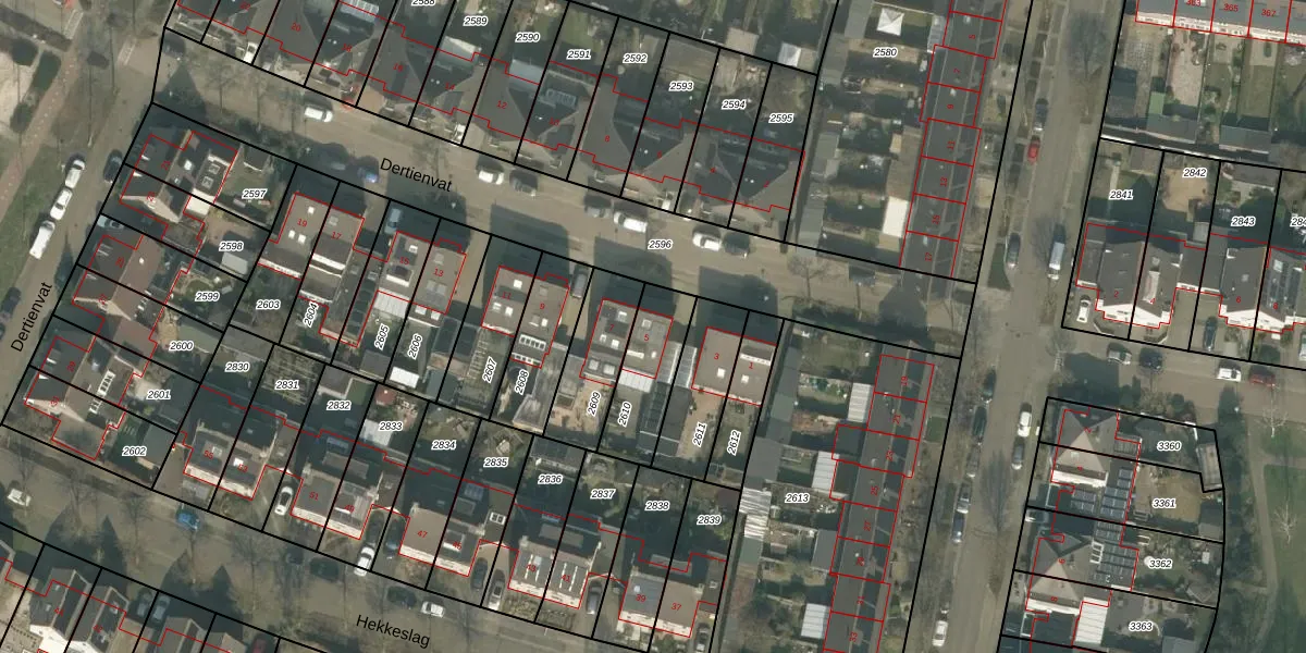 Het perceel waarop Dertienvat 5 staat heeft een oppervlakte van 228 m². Dit is een middelgroot perceel. De perceeloppervlakte wordt geregistreerd door het Kadaster. Gedetailleerde informatie over de maten van dit perceel kunt u vinden in het rapport Kadastrale kaart met maatvoering van Dertienvat 5.