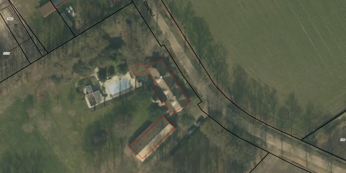 Het perceel waarop Dorshout 9 staat heeft een oppervlakte van 2,2 ha. Dit is een zeer groot perceel. De perceeloppervlakte wordt geregistreerd door het Kadaster. Gedetailleerde informatie over de maten van dit perceel kunt u vinden in het rapport Kadastrale kaart met maatvoering van Dorshout 9.