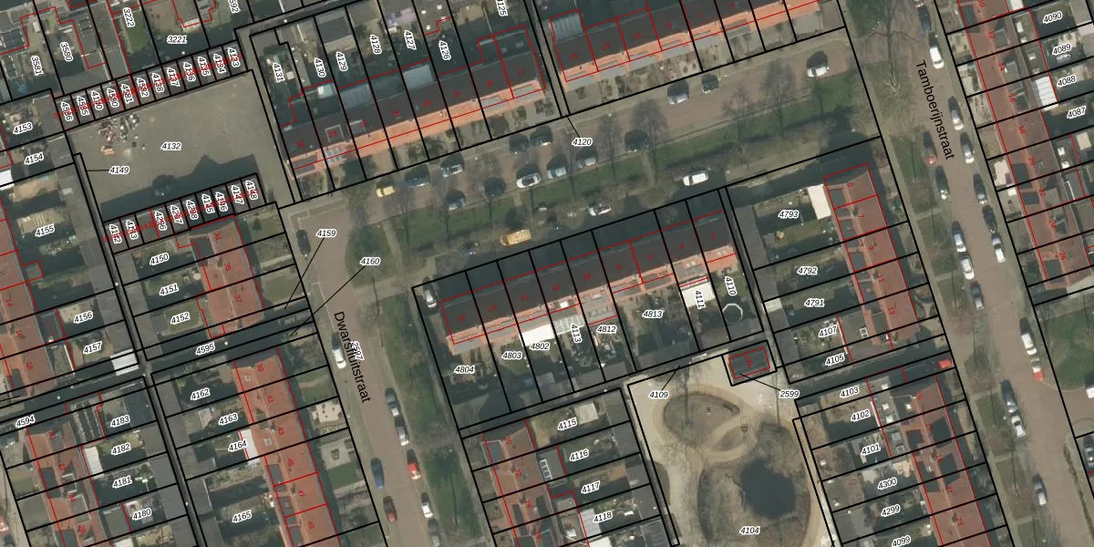 Gebruik de zoekbalk of klik op een perceel voor informatie over de adressen binnen dit perceel.