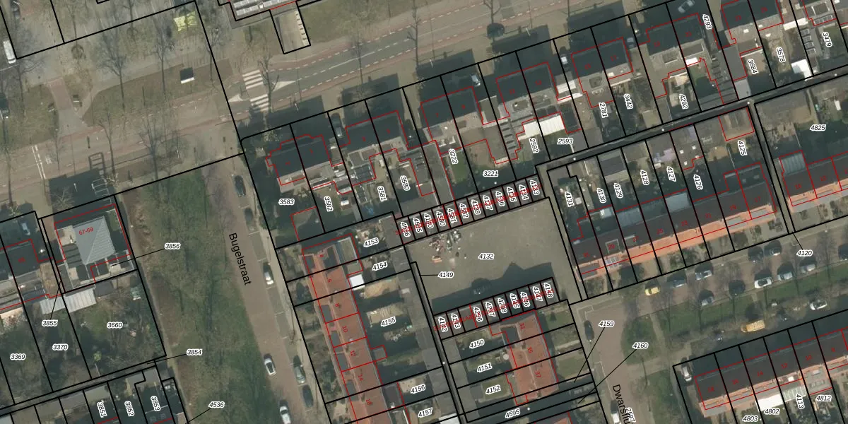 Gebruik de zoekbalk of klik op een perceel voor informatie over de adressen binnen dit perceel.