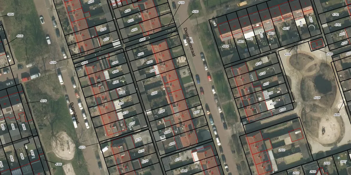 Het perceel waarop Dwarsfluitstraat 47 staat heeft een oppervlakte van 568 m². Dit is een groot perceel. De perceeloppervlakte wordt geregistreerd door het Kadaster. Gedetailleerde informatie over de maten van dit perceel kunt u vinden in het rapport Kadastrale kaart met maatvoering van Dwarsfluitstraat 47.