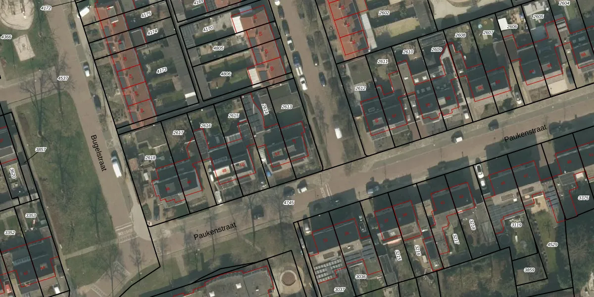 Gebruik de zoekbalk of klik op een perceel voor informatie over de adressen binnen dit perceel.