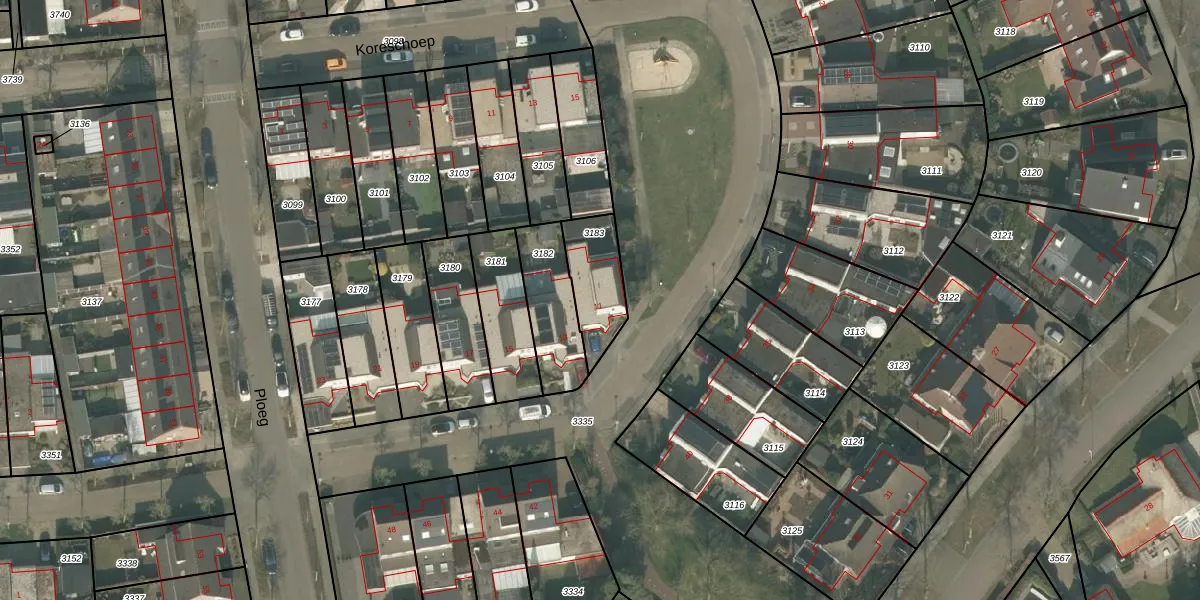 Gebruik de zoekbalk of klik op een perceel voor informatie over de adressen binnen dit perceel.