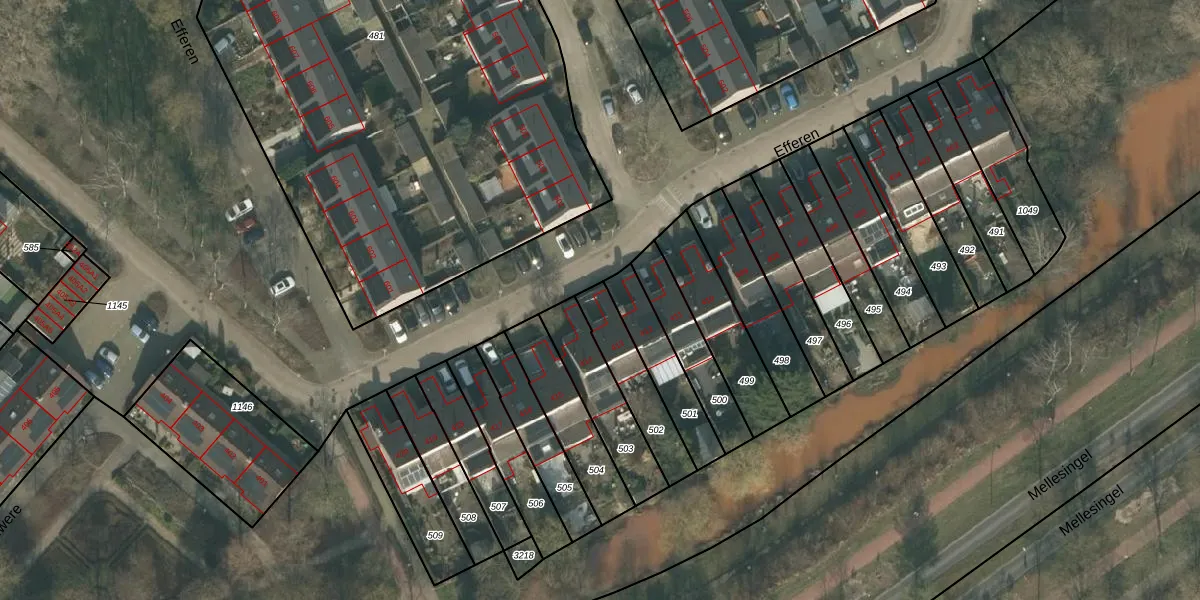 Gebruik de zoekbalk of klik op een perceel voor informatie over de adressen binnen dit perceel.