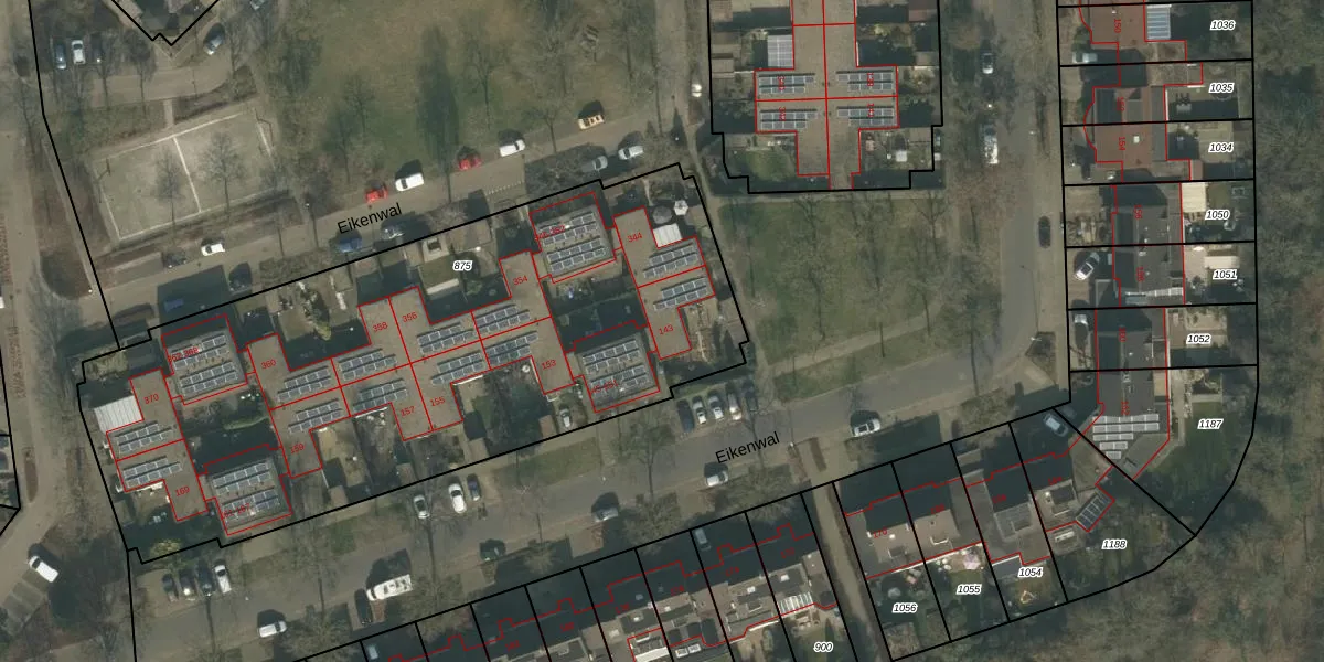 Het perceel waarop Eikenwal 143 staat heeft een oppervlakte van 3338 m². Dit is een zeer groot perceel. De perceeloppervlakte wordt geregistreerd door het Kadaster. Gedetailleerde informatie over de maten van dit perceel kunt u vinden in het rapport Kadastrale kaart met maatvoering van Eikenwal 143.