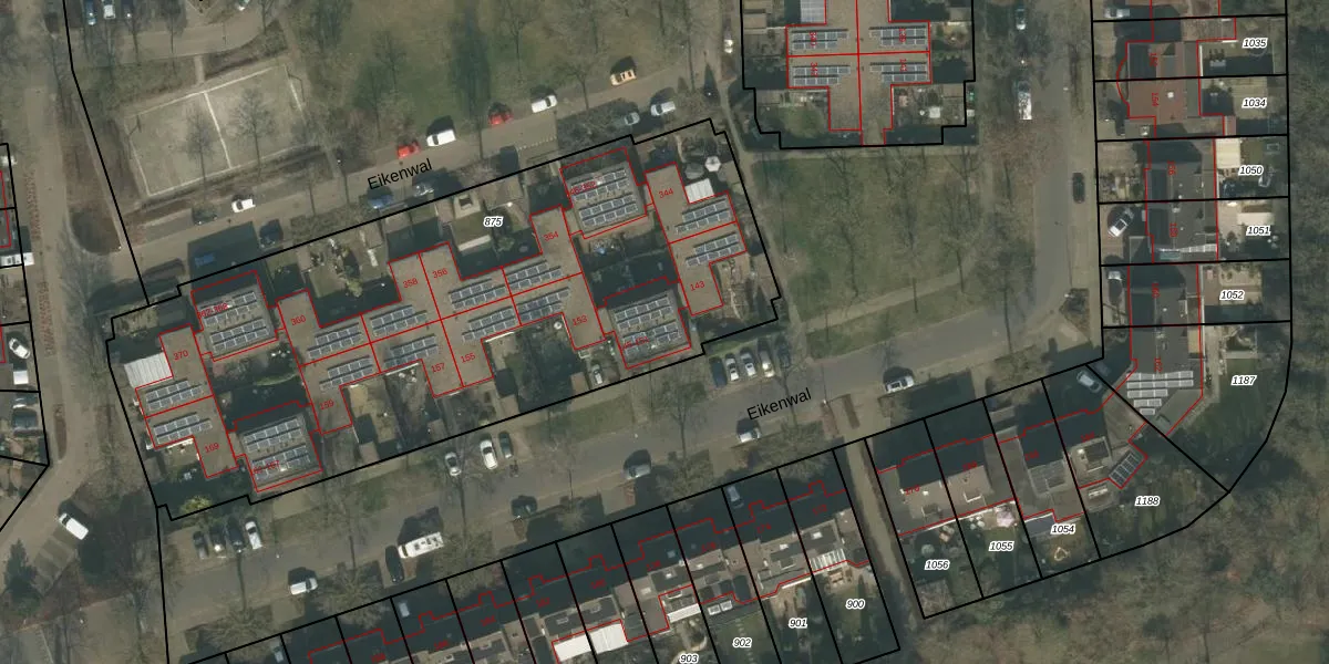 Het perceel waarop Eikenwal 145 staat heeft een oppervlakte van 3338 m². Dit is een zeer groot perceel. De perceeloppervlakte wordt geregistreerd door het Kadaster. Gedetailleerde informatie over de maten van dit perceel kunt u vinden in het rapport Kadastrale kaart met maatvoering van Eikenwal 145.