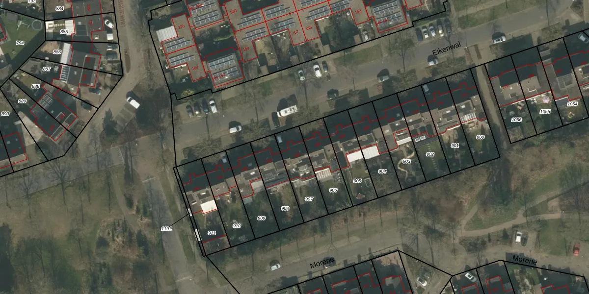 Gebruik de zoekbalk of klik op een perceel voor informatie over de adressen binnen dit perceel.