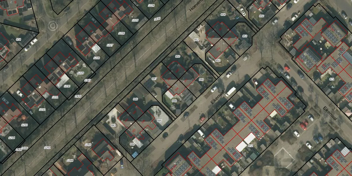 Het perceel waarop Eikenwal 219 staat heeft een oppervlakte van 227 m². Dit is een middelgroot perceel. De perceeloppervlakte wordt geregistreerd door het Kadaster. Gedetailleerde informatie over de maten van dit perceel kunt u vinden in het rapport Kadastrale kaart met maatvoering van Eikenwal 219.
