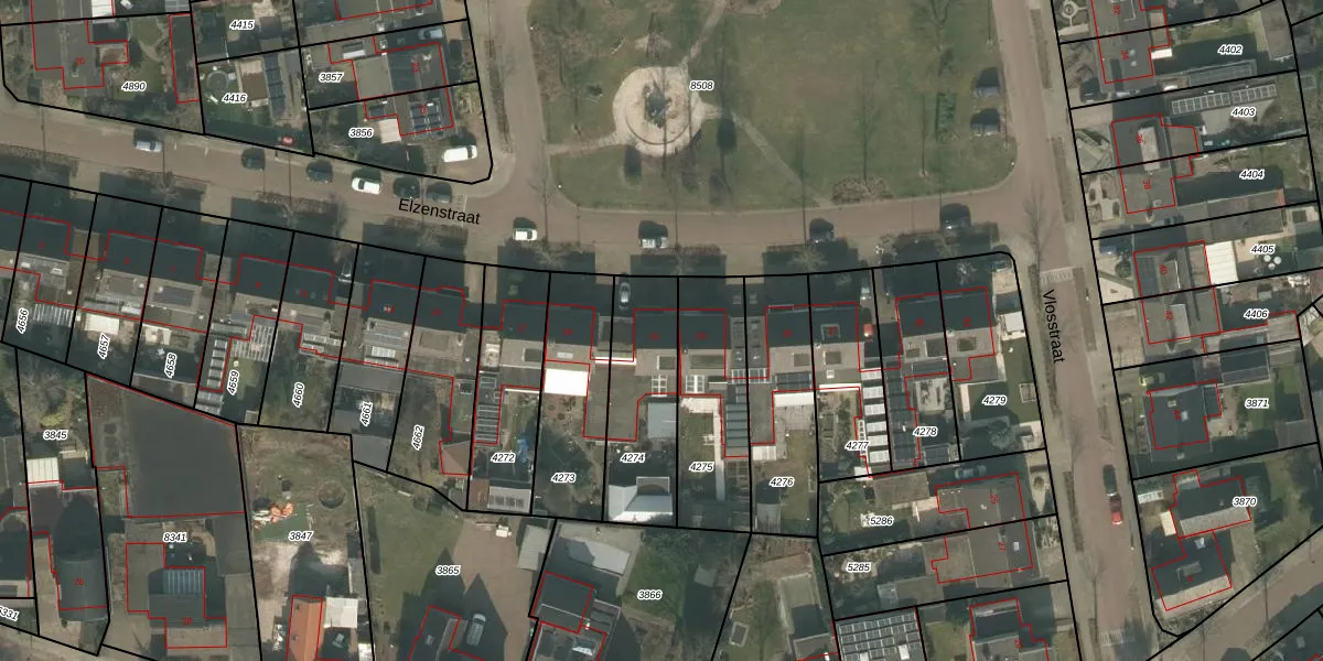 Het perceel waarop Elzenstraat 21 staat heeft een oppervlakte van 388 m². Dit is een groot perceel. De perceeloppervlakte wordt geregistreerd door het Kadaster. Gedetailleerde informatie over de maten van dit perceel kunt u vinden in het rapport Kadastrale kaart met maatvoering van Elzenstraat 21.