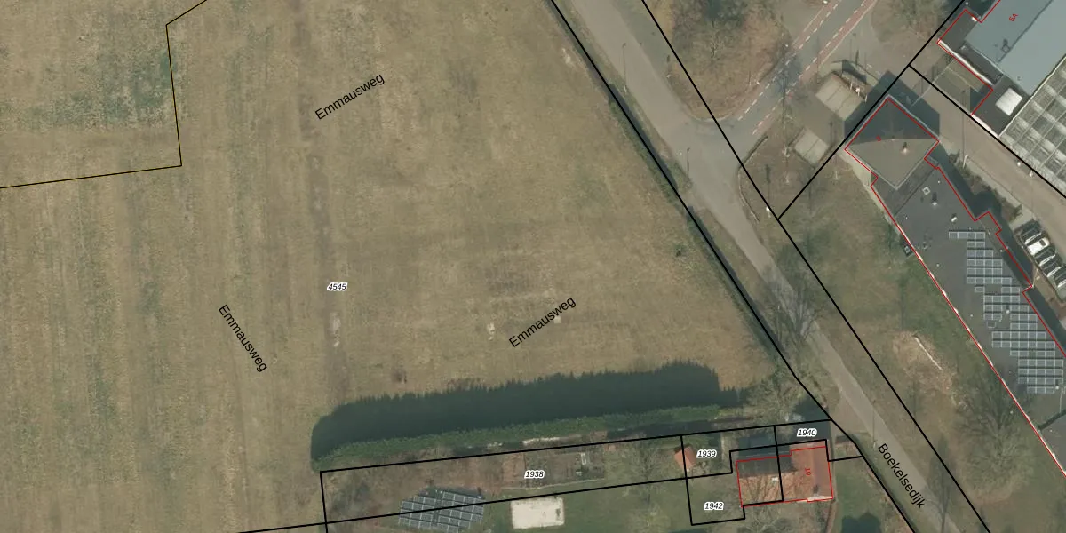 Het perceel waarop Emmausweg 11 staat heeft een oppervlakte van 1,3 ha. Dit is een zeer groot perceel. De perceeloppervlakte wordt geregistreerd door het Kadaster. Gedetailleerde informatie over de maten van dit perceel kunt u vinden in het rapport Kadastrale kaart met maatvoering van Emmausweg 11.