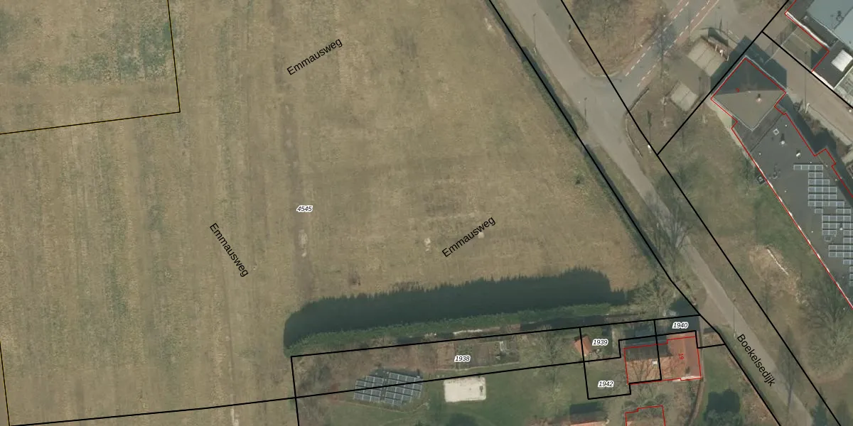 Het perceel waarop Emmausweg 15 staat heeft een oppervlakte van 1,3 ha. Dit is een zeer groot perceel. De perceeloppervlakte wordt geregistreerd door het Kadaster. Gedetailleerde informatie over de maten van dit perceel kunt u vinden in het rapport Kadastrale kaart met maatvoering van Emmausweg 15.