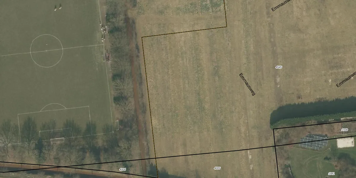 Het perceel waarop Emmausweg 18 staat heeft een oppervlakte van 1,3 ha. Dit is een zeer groot perceel. De perceeloppervlakte wordt geregistreerd door het Kadaster. Gedetailleerde informatie over de maten van dit perceel kunt u vinden in het rapport Kadastrale kaart met maatvoering van Emmausweg 18.