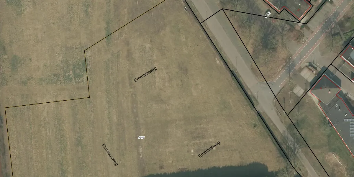 Het perceel waarop Emmausweg 43 staat heeft een oppervlakte van 1,3 ha. Dit is een zeer groot perceel. De perceeloppervlakte wordt geregistreerd door het Kadaster. Gedetailleerde informatie over de maten van dit perceel kunt u vinden in het rapport Kadastrale kaart met maatvoering van Emmausweg 43.