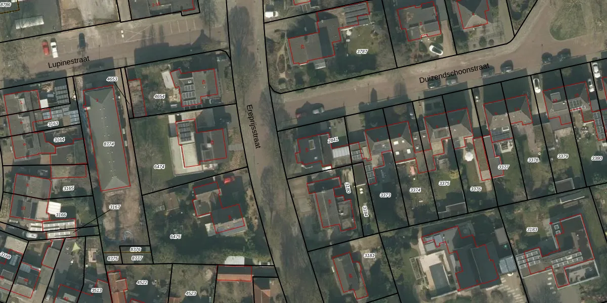 Gebruik de zoekbalk of klik op een perceel voor informatie over de adressen binnen dit perceel.