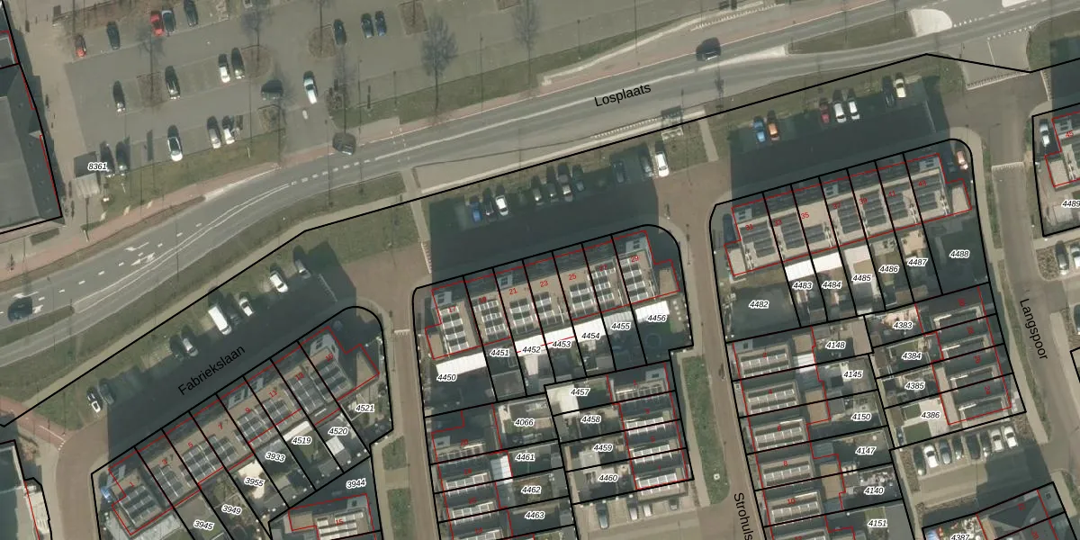 Gebruik de zoekbalk of klik op een perceel voor informatie over de adressen binnen dit perceel.